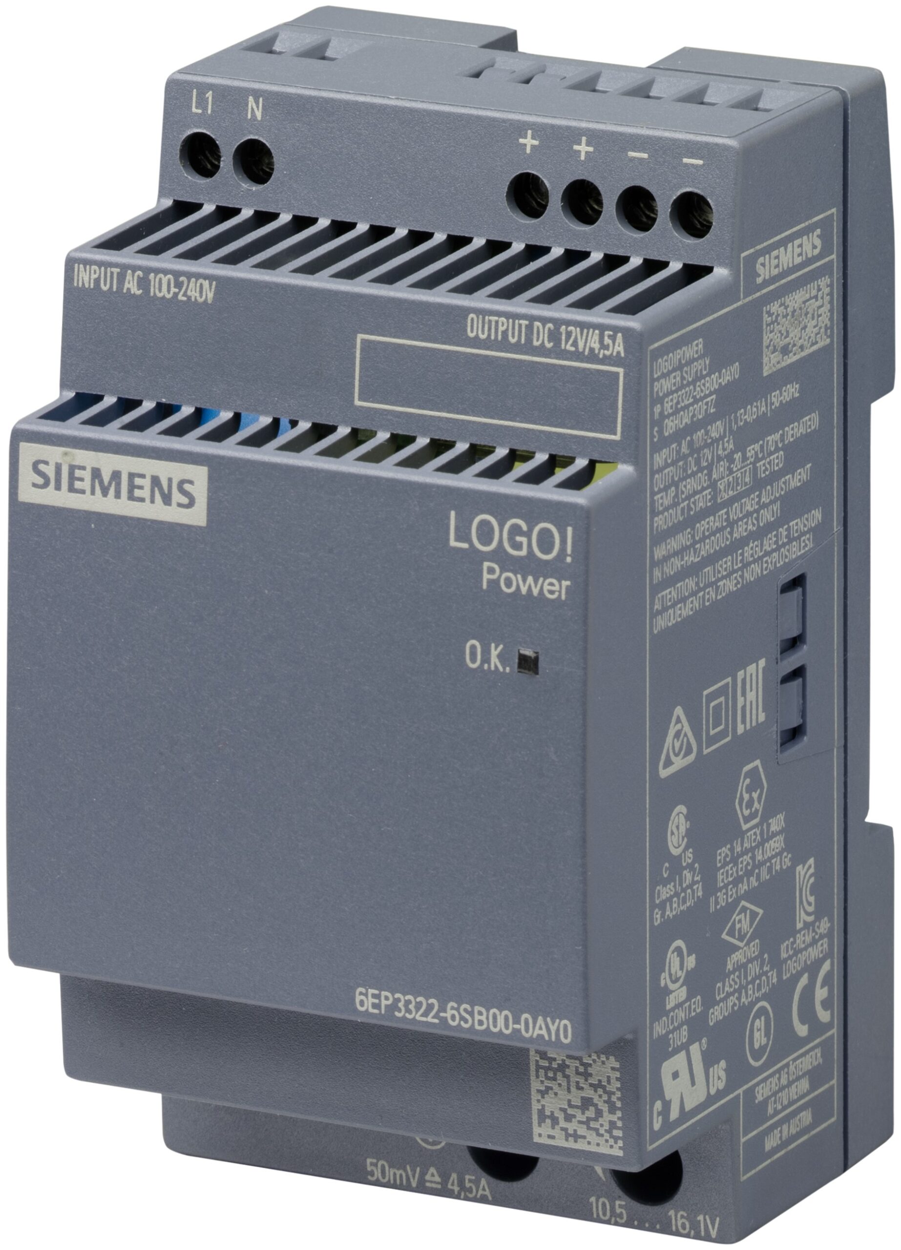 Featuring a wide 230V ac input range, the Siemens 6EP3322-6SB00-0AY0 ensures compatibility with standard industrial power grids. The compact DIN rail mountable design facilitates easy integration into control cabinets, saving valuable space. This LOGO POWER supply is built for durability and consistent performance in challenging environments.